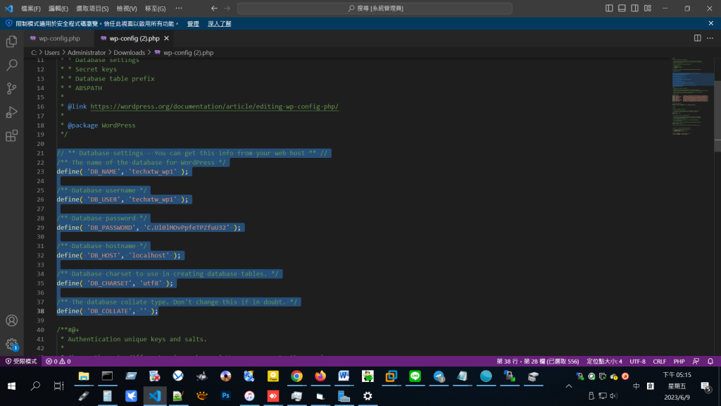 1.確保 MariaDB 資料庫的連接是否都正確。這些設置可以在 WordPress 的 [ wp-config.php ] 文件中找到,[ wp-config.php ] 文件包含所有與連接資料庫有關的設置,包括 MariaDB 資料庫的主機名稱、用戶名和密碼等。 您可以直接在網站的根目錄 ( 如 /var/www/html/ )下找到 [ wp-config.php ] 文件,然後將其下載到您的本地電腦查看,確保以下設置與您的 MariaDB 資料庫設置一致: