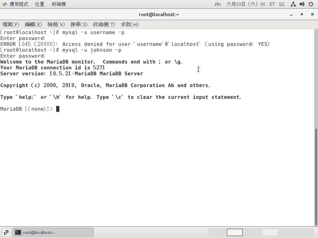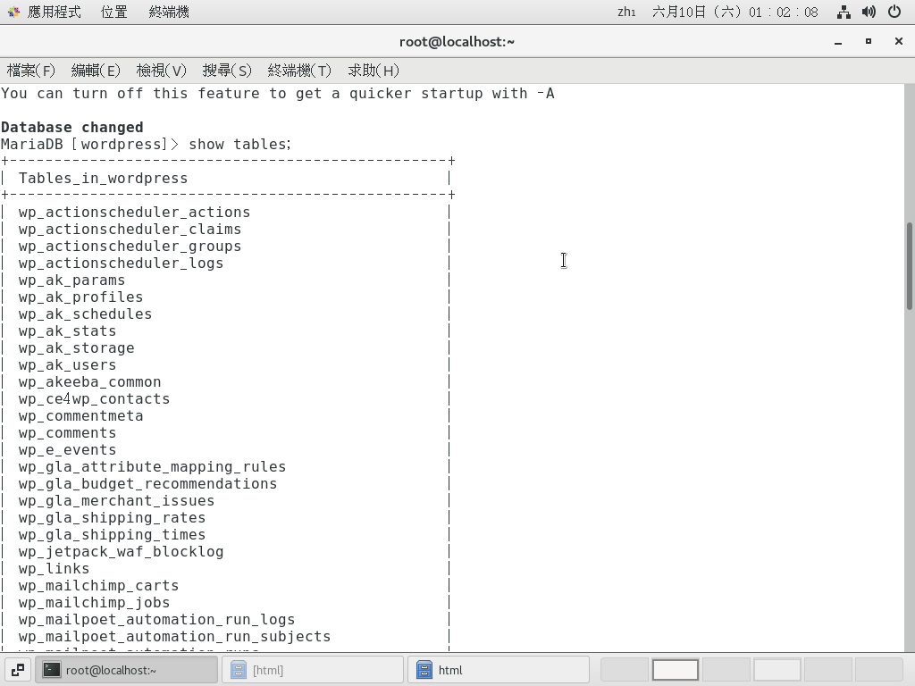 • 如果您有自己的 CentOS 7 主機,可以使用以下指令來檢測資料庫是否正常運作:
