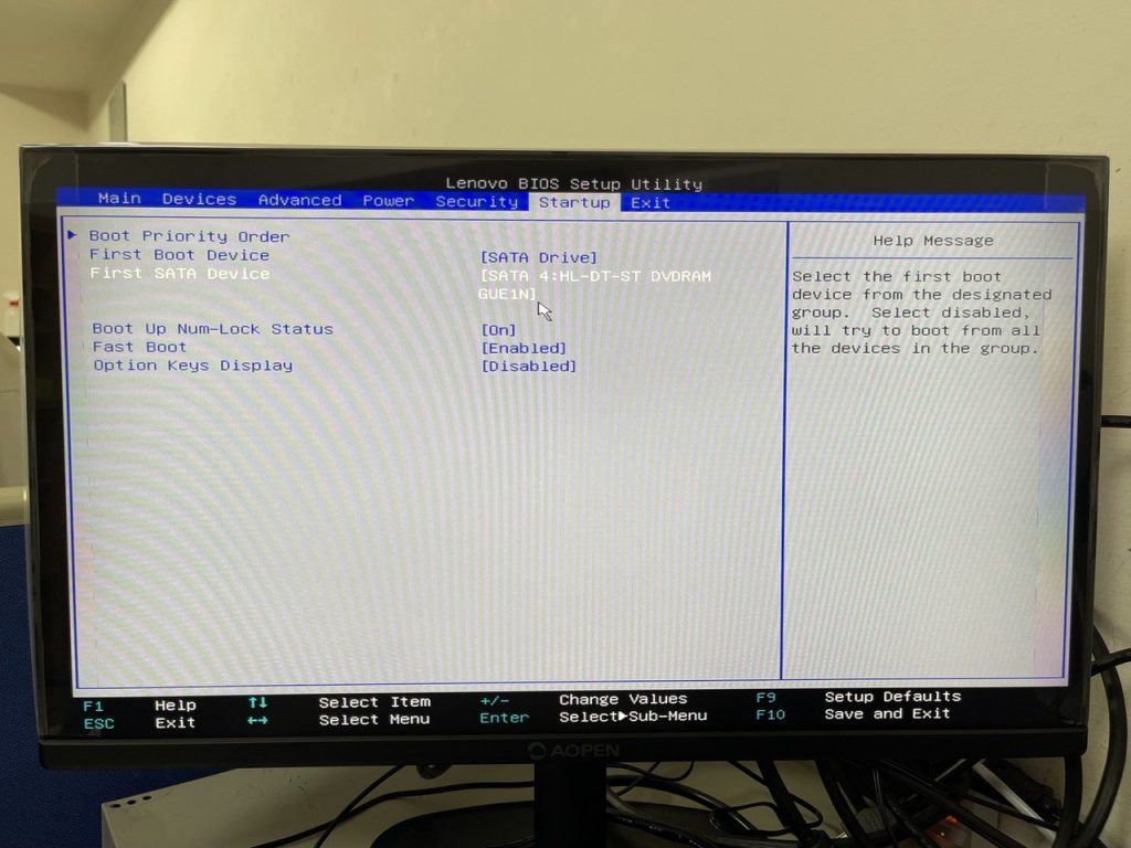 STEP 3-2:把 First SATA Devive 選項改成 [ SATA 4:HT-DT-ST DVDRAM GUE1N ]。