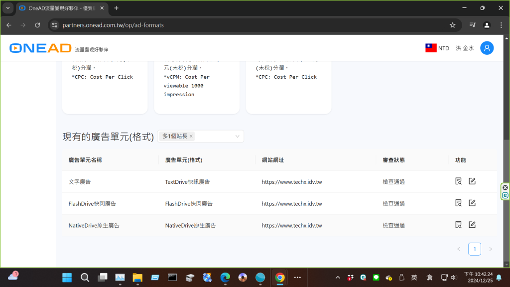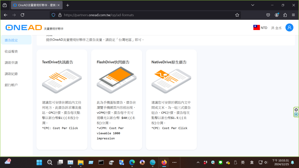 1. 訪問 OneAD 官網:打開瀏覽器,訪問 [OneAD 官網] https://partners.onead.com.tw