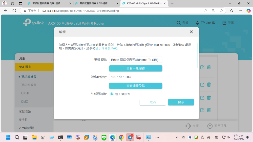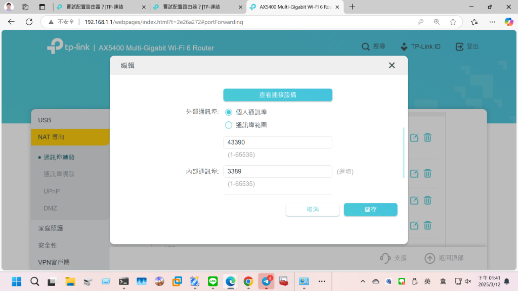如何使用 Windows 11 的遠端桌面連線連到遠端的 Windows Server 2025(被控端使用 TP-Link AX5400)