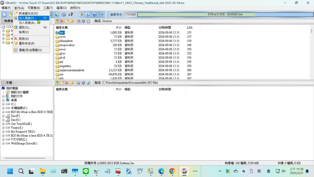 - 掛載你的 Windows 11 ISO 檔案:(如使用 Ultra ISO 9.53)