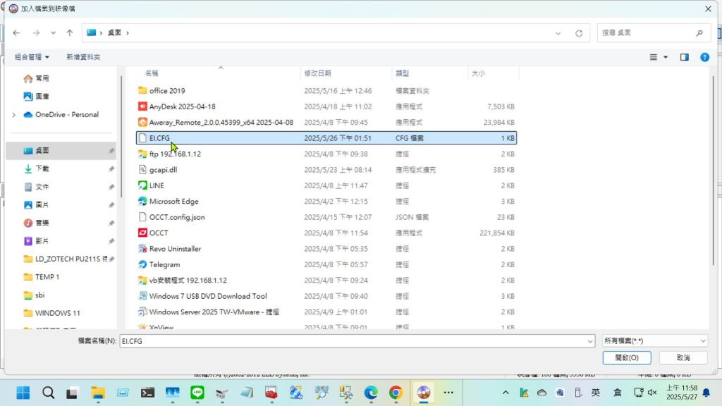EI.CFG,務必確認副檔名是.CFG 而不是.txt! - 現在,導航到你剛才掛載的 Windows 11 虛擬光碟機。