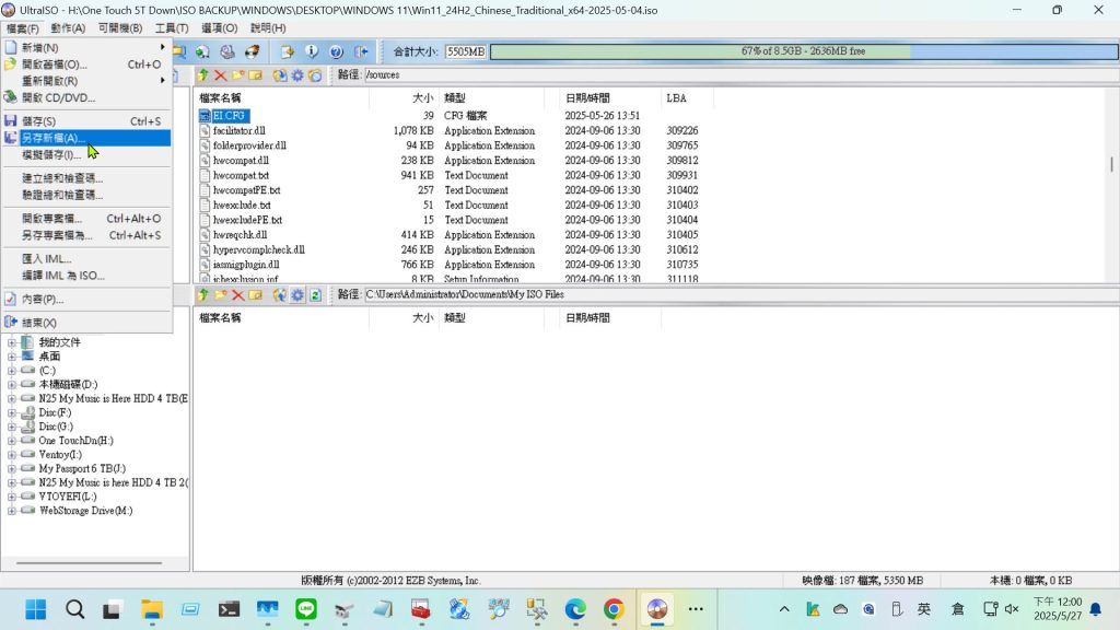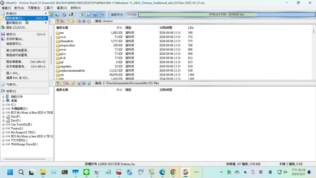 - 找到下載的 Windows 11 專業版 ISO 檔案,以 [檔案-開啟舊檔],打開已下載的 Windows 11 專業版 ISO 檔