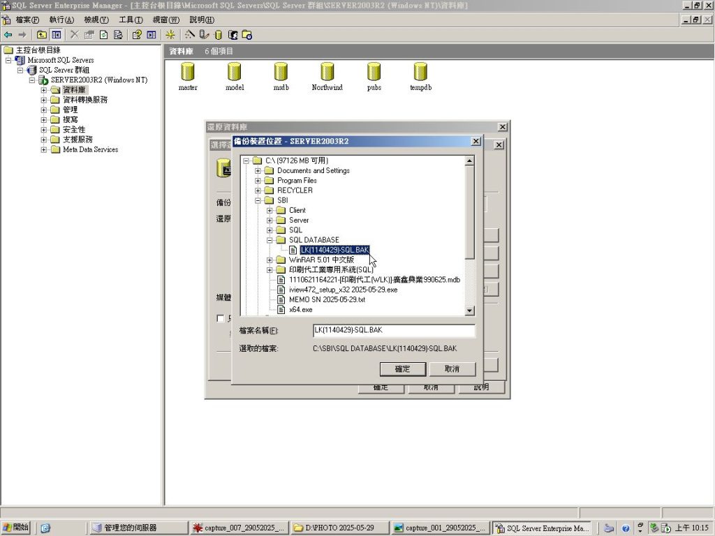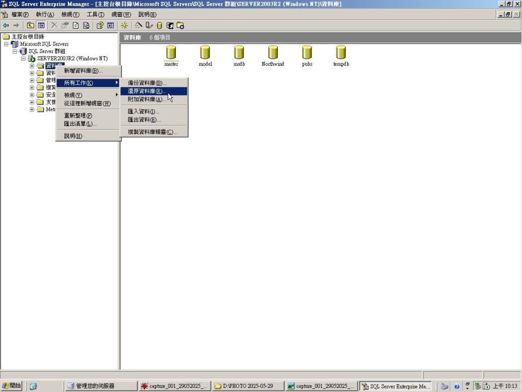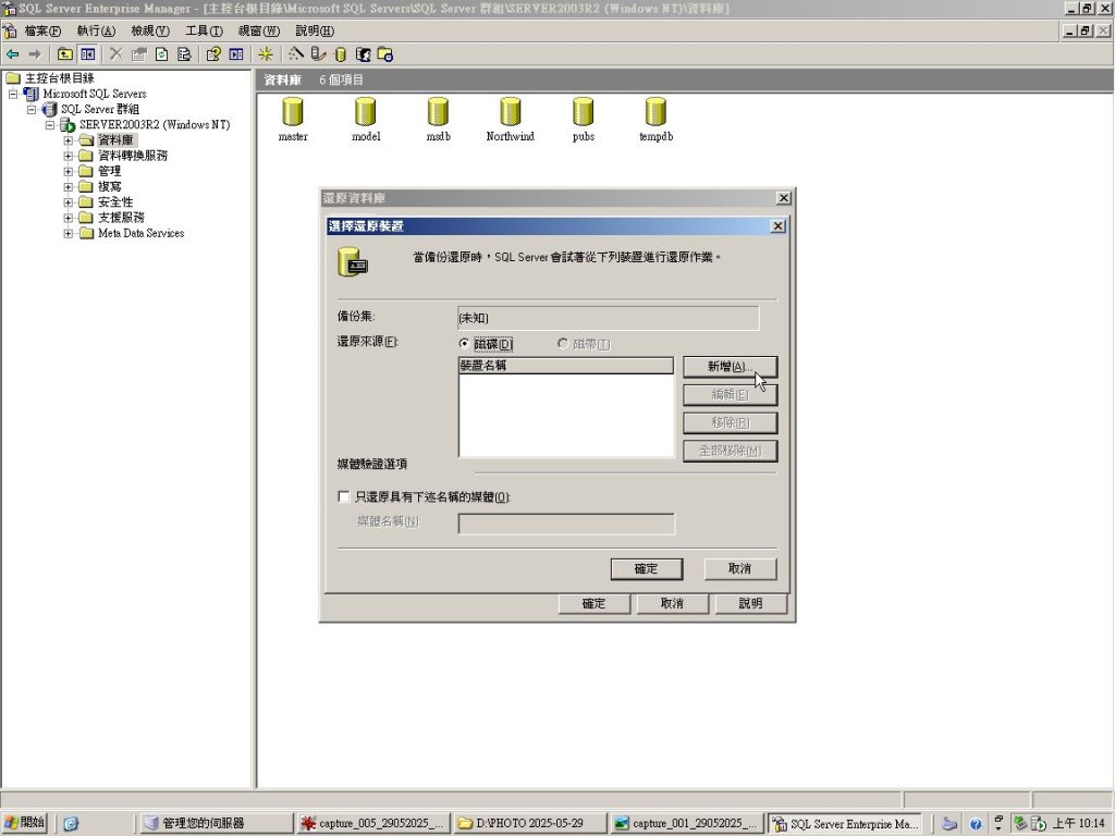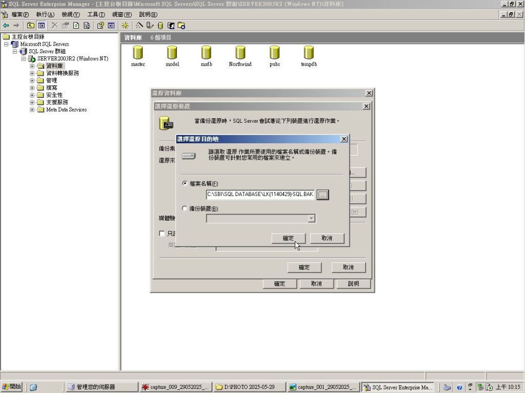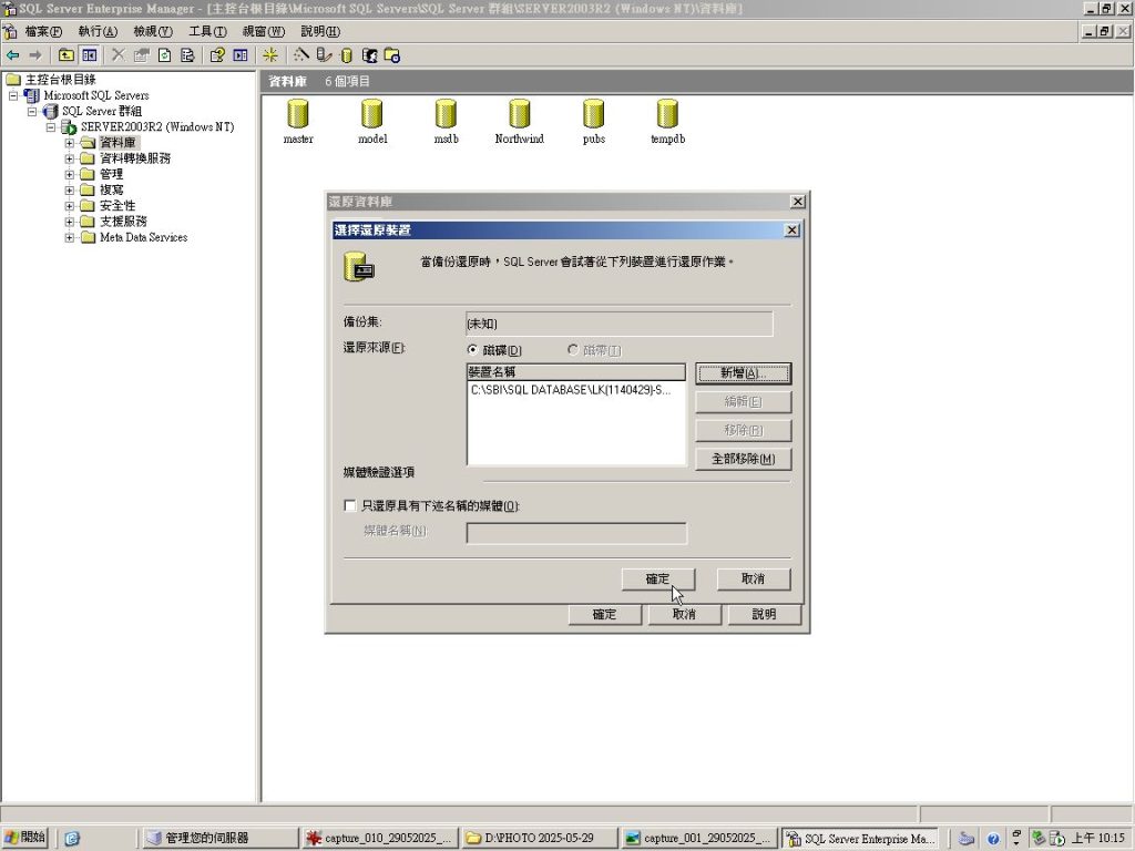 Microsoft SQL Enterprise Manager 版本 8.0 資料庫還原方便記憶詩