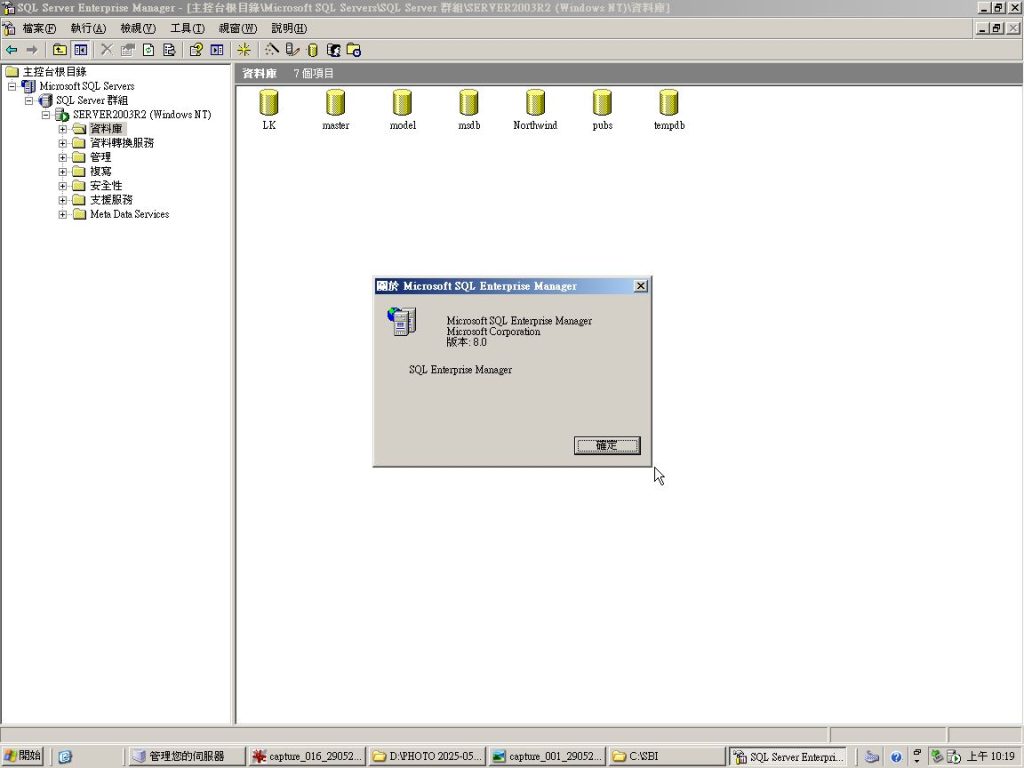 本次使用的版本 Microsoft SQL Enterprise Manager 版本 8.0